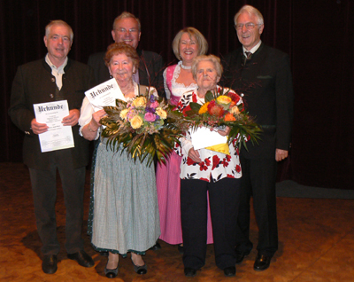 Der Siedlerbund Garching hatte am 8. Oktober ins Bürgerhaus zu seiner 75-Jahres-Feier geladen. Der Einladung folgten rund 300 Mitglieder, Freunde und Ehrengäste. Die 2. Vorsitzende des Vereins Brigitte Goldbach begrüßte im Namen des Vereins den Landesvorsitzenden des Eigenheimerverbandes Bayern e.V. Heinrich Rösl sowie 1. Bürgermeisterin Hannelore Gabor und Landrätin Johanna Rumschöttel sehr herzlich. Sie bedankte sich bei den Garchinger Vereinen, die einen eigenen Beitrag zur Gestaltung des Abends leisteten. Sie nannte den VfR Garching, den Heimatverein sowie den Kirchenchor der Kirchengemeinde St. Severin. Ihren Dank sagte sie auch dem Blasorchester Garching unter Leitung von Norbert Kutta und Gaby Cygan und Bärbel Köppl, die als „Doppelpack“ einen gelungenen und heiteren Beitrag leisteten.