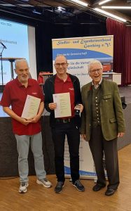 Eine besondere Ehrung des Eigenheimer Verbandes durch den Landesvorstand Manfred Solbrig erhielten außerdem Jochen Karl (3. Vorstand) und Rainer Belm. Nachdem seitens der Mitglieder keine weiteren Anträge eingingen, beendete Rainer Belm die Versammlung und dankte den Mitgliedern für ihr zahlreiches Kommen.